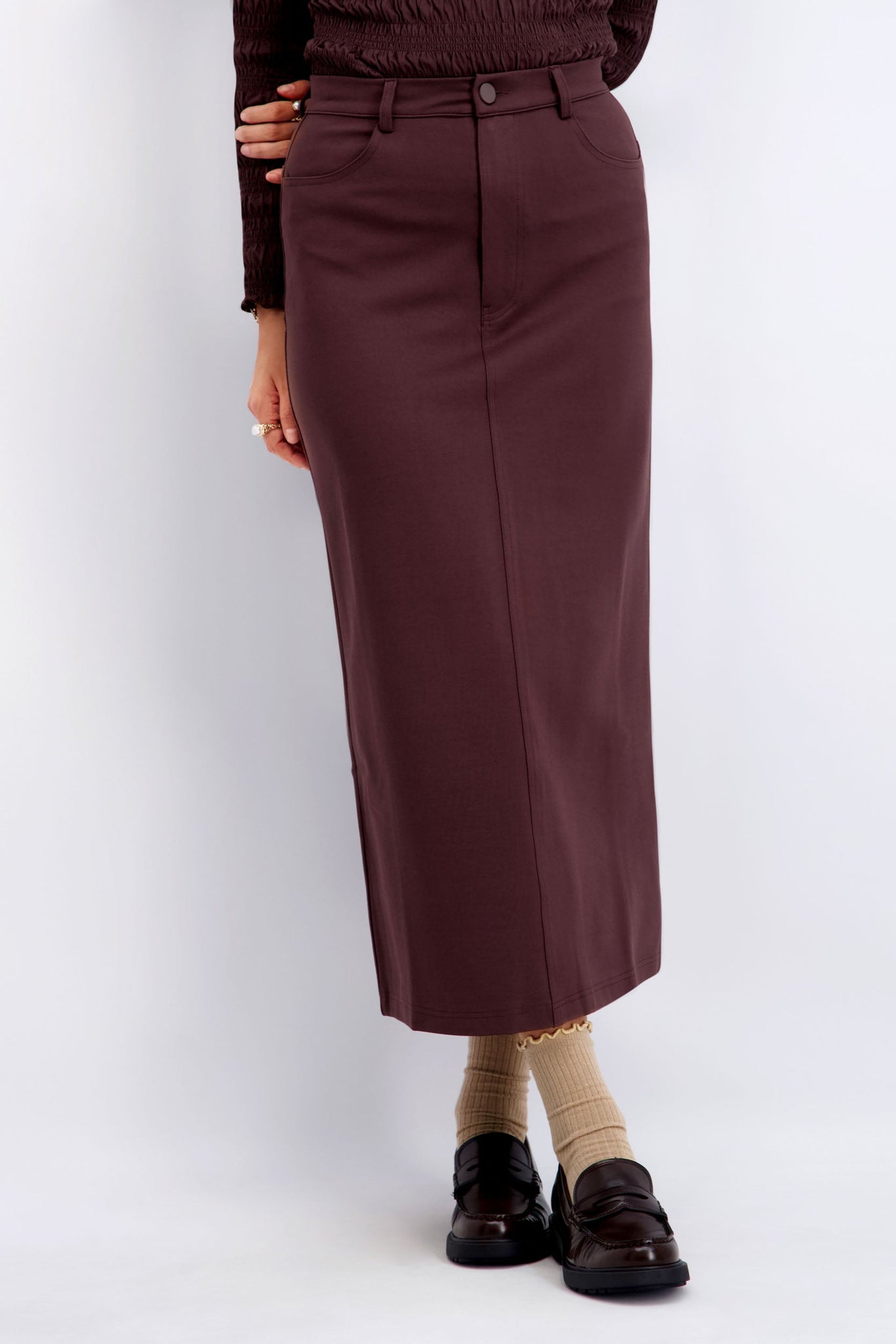 Straight Brown Stretch Skirt